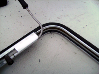 Stangholdere og gummilisten placeres og gummilisten kan med en afrunder, skruetrækker eller lignende trykkes tilbage i alurammen. Det er vigtigt at placere gummirammen som vist på billedet.